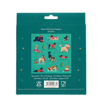 Add a cheerful spirit to your holiday table with this pack of 20 napkins, each adorned with charming dogs dressed in festive outfits.
