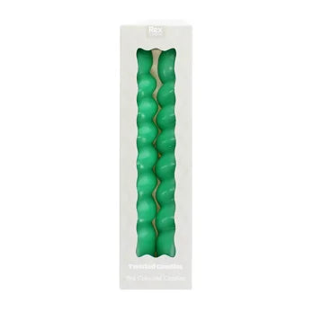 This pack of two dark green spiral candles creates an eye-catching display on dining tables or mantelpieces, casting a warm, inviting glow with unmistakable style.